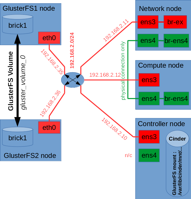 In this tutorial we are going to deploy VLAN based OpenStack Mitaka on three CentOS 7 nodes (Controller, Network, Compute) using Packstack installer script and integrate it with already existing GlusterFS redundant storage based on two Gluster Peers.